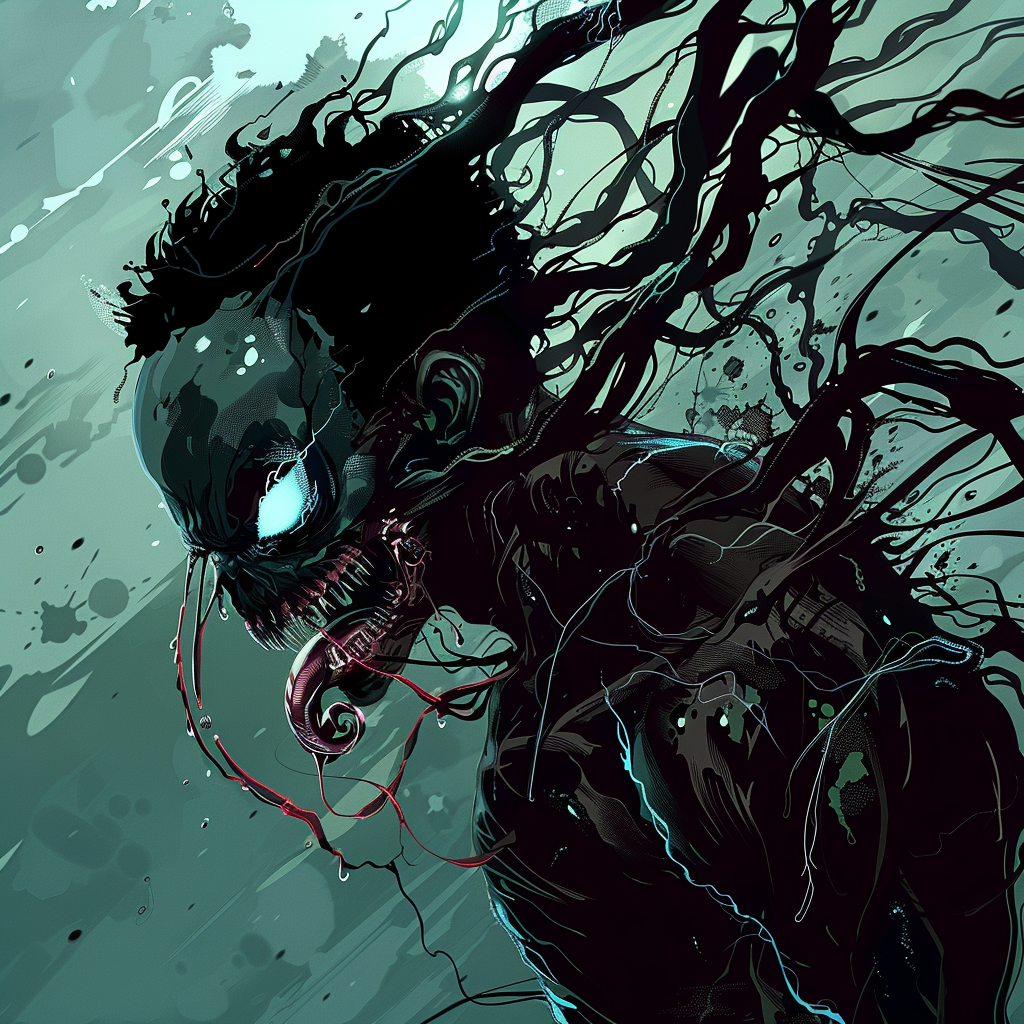 Mutagenic is an ever-evolving symbiote that warps both the body and mind of its host. Its form is a chaotic mass of tendrils that weave and grow in unpredictable patterns, as though the symbiote is constantly shifting and adapting. Dark, sinewy strands crawl across the host’s body, integrating deeply into their skin, as their very essence is transformed. Glowing eyes pierce through the darkness, revealing the symbiote's intelligence and lethal intent.